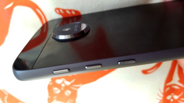 All of this is pretty clever, because those metal connectors allow power to flow from the Moto Z to these devices, all while attaching snugly with magnets. It’s a unique method of adding modules to smartphones, and I definitely preferred over LG’s pull-out battery situation. The power and volume buttons are all on the right side, and while almost identical, the power button has nice etching to designate the difference. They’re hard, aluminum buttons with very satisfying click, much like any of Samsung’s flagship phones.